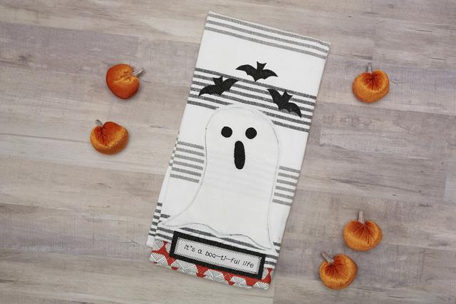 With just a few fabric scraps you can add a little spook to your home decor. The BOO-ti-ful Life tea towel is the perfect way to transform your scraps into something festive for the holidays. Download project instructions here.
