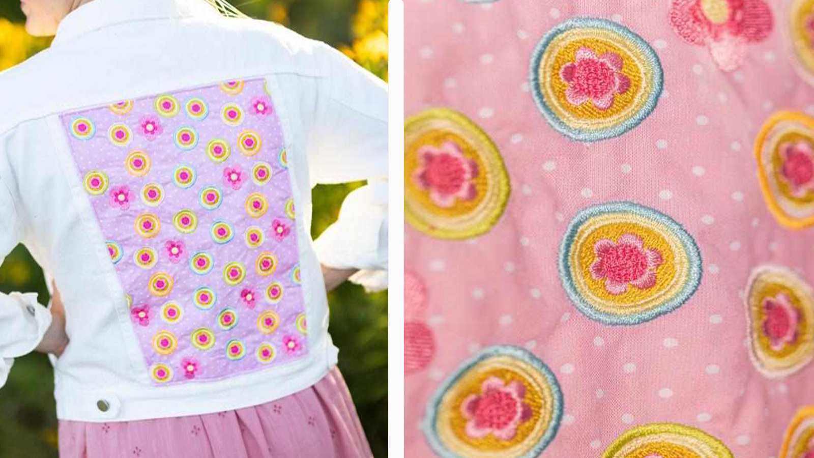 It’s time to refresh that denim jacket hanging in the back of the closet into something new and exciting. By using the built-in embroidery designs in the Baby Lock Bloom you can elevate a store purchased garment piece into something fabulous and uniquely yours!