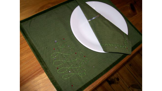 Dress up your table this Christmas with an elegant yet simple-to-make set of placemats and napkins that feature bobbin work in a holiday design and decorative edge stitching. If you're new to bobbin work try this project! It's a great way to learn a new skill while creating a beautiful gift for family or friends. Download tree template and printable instructions.