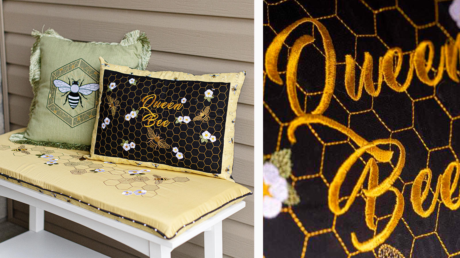 Go big or go home with the Large Connect designs included with the Solaris Vision. This collection of designs automatically connect to create designs that far exceed the already large embroidery field on the Solaris Vision. In addition there are several complimentary embroidery patterns included to match with the 5 Large Connect designs! Use this design collection for all sorts of projects or turn them into these fun throw pillows.