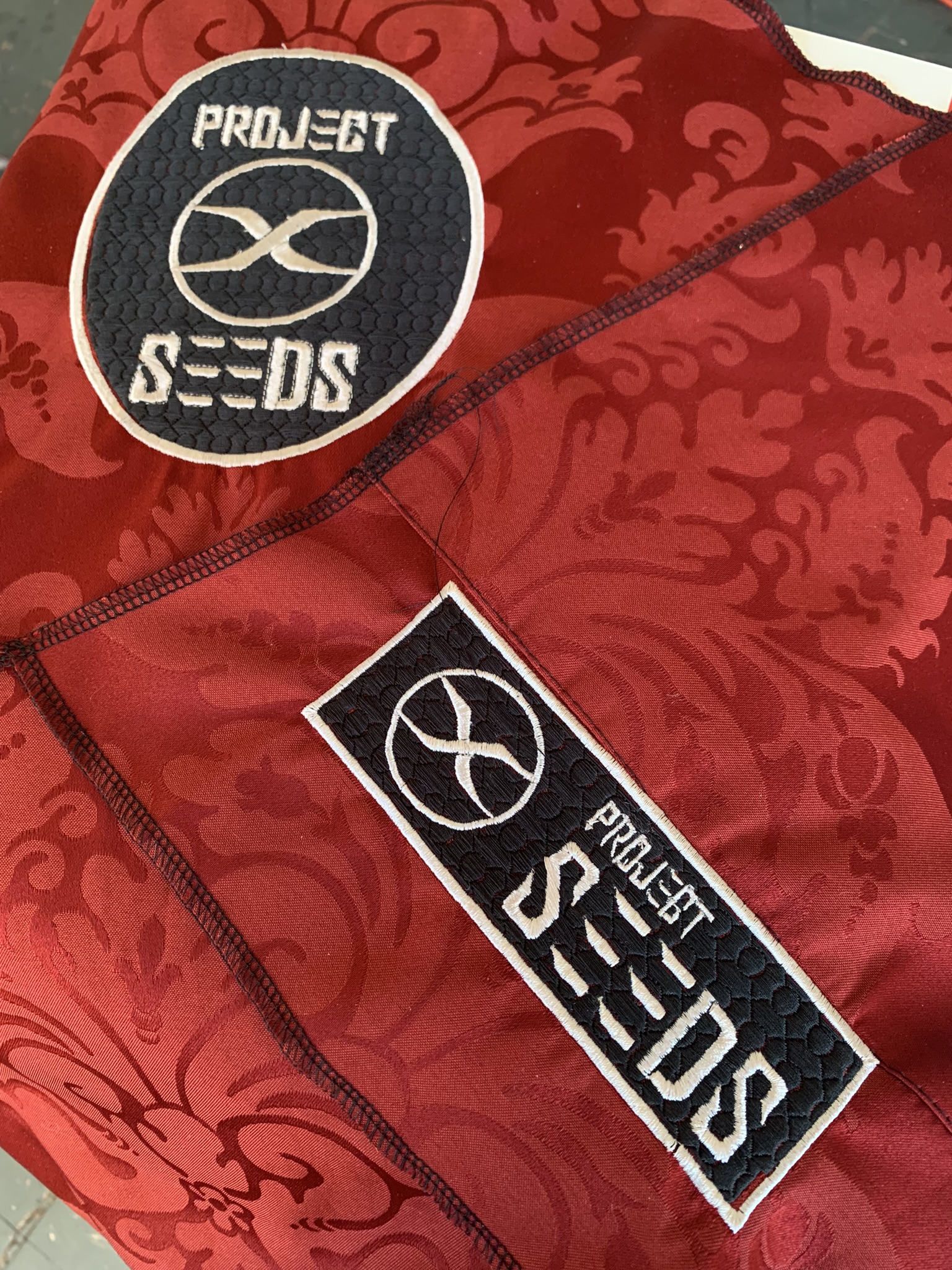 This was my first time digitizing an embroidery file. I’m very visual, so I spent a lot of time making tests. I started off very simple and true to the original design. The more I worked on this piece, the more I wanted texture, and a little bit of something extra. I am taking a simple, animated piece and creating it in the real world, so, of course it should have a bit more interest and detail. I landed on adding a patterned fill to the background and extra stitching around the lettering. This gave a lot more interest when you get up close, but from a distance, it is still a nod to the iconic character. (Embroidery machine: Baby Lock Flare)