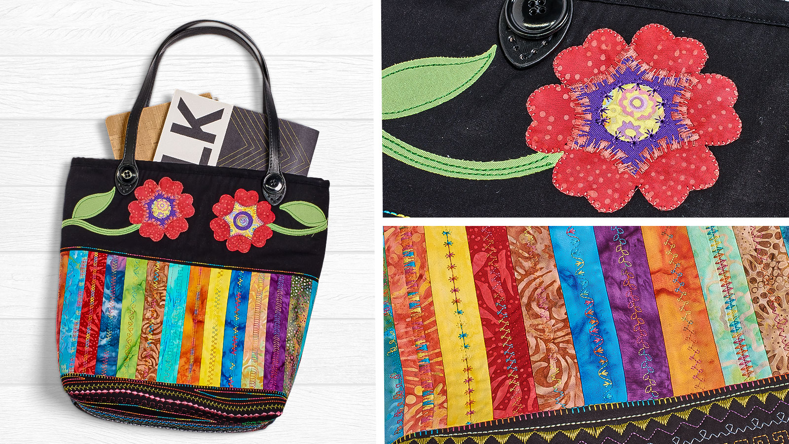 When there are so many stitches in a machine it is really special when you find a project that is just right. Putting this tote together just made me smile with the colors texture and all of the stitches I was able to use.