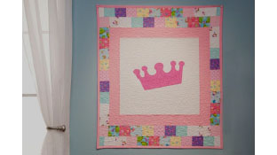 Combine whimsical print fabrics and free-motion quilting from the Baby Lock Tiara long-arm machine to create this Fairytale quilt. Perfect for a child’s room or as a baby shower gift this quilted wall hanging is quick and can be easily made in a few hours. Download printable instructions and template.