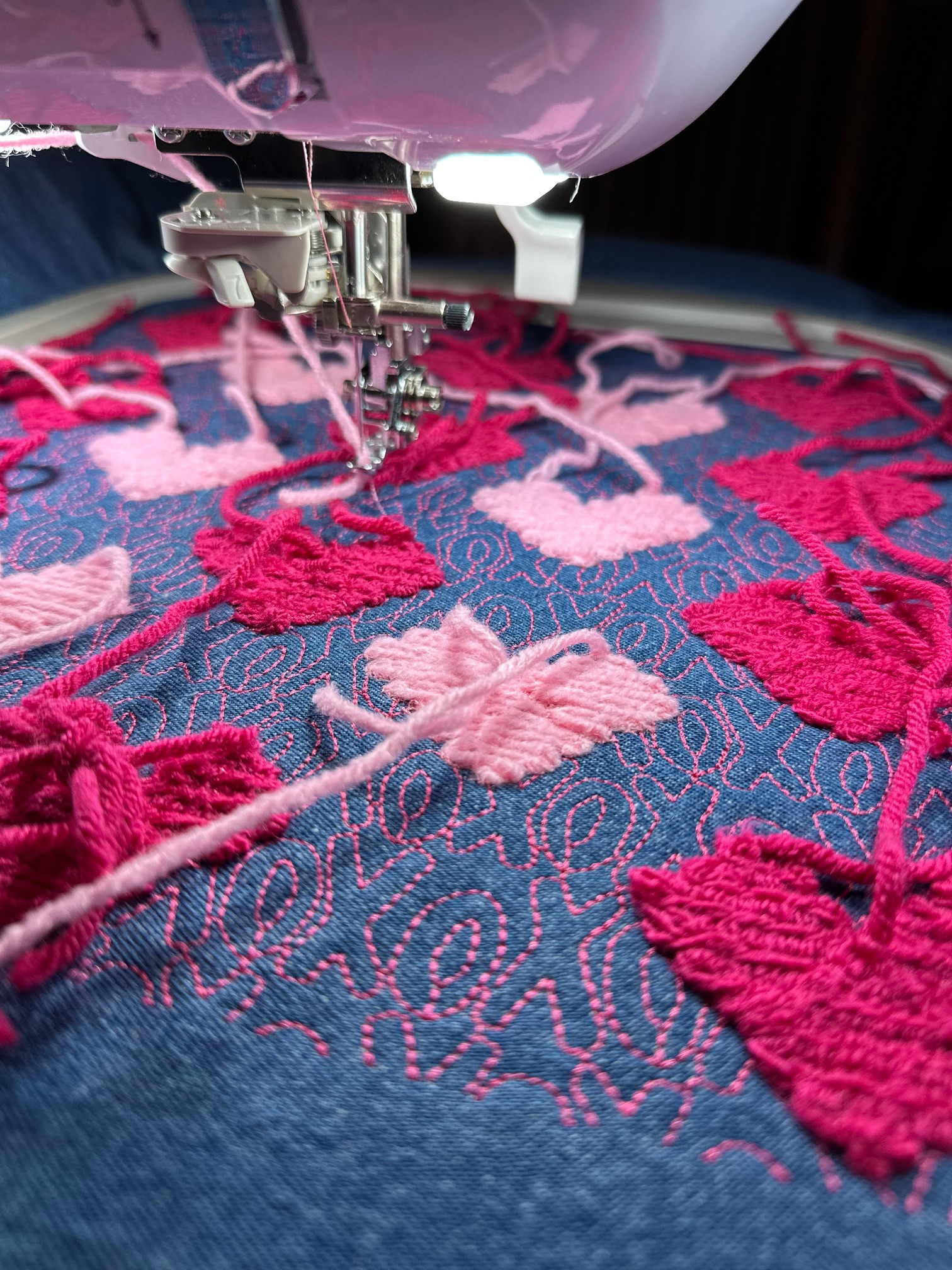 1. For this project, prior to stitching the Yarn Couching design, a decorative fill was stitched.