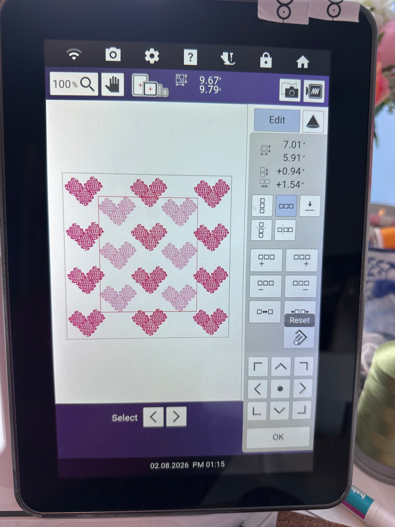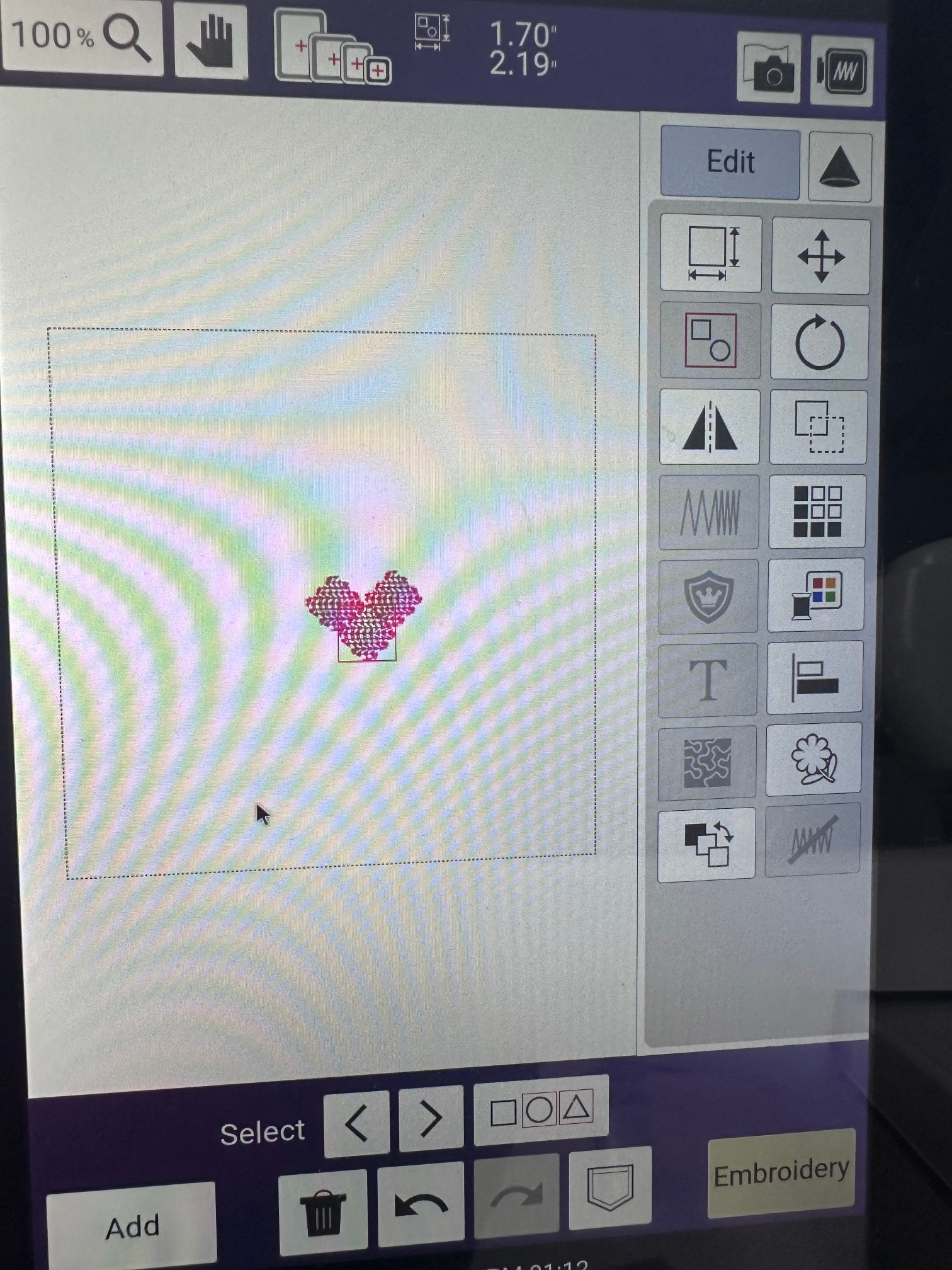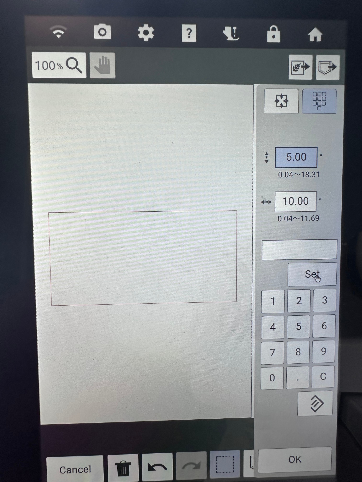 6. This will show give a visual on the screen for that hoop size to help us keep our hearts to an appropriate size for the 10 5/8” X 10 5/8” hoop.