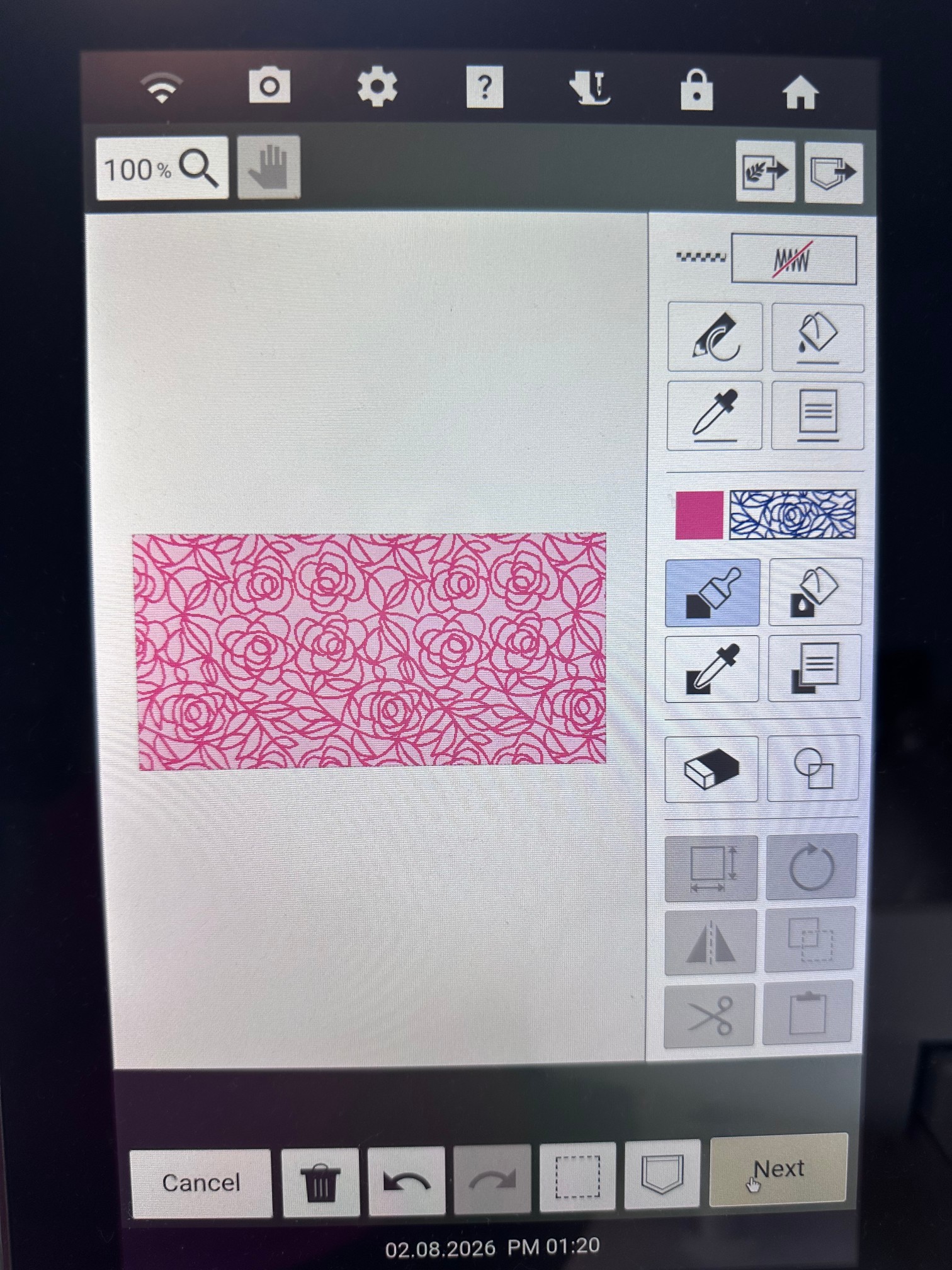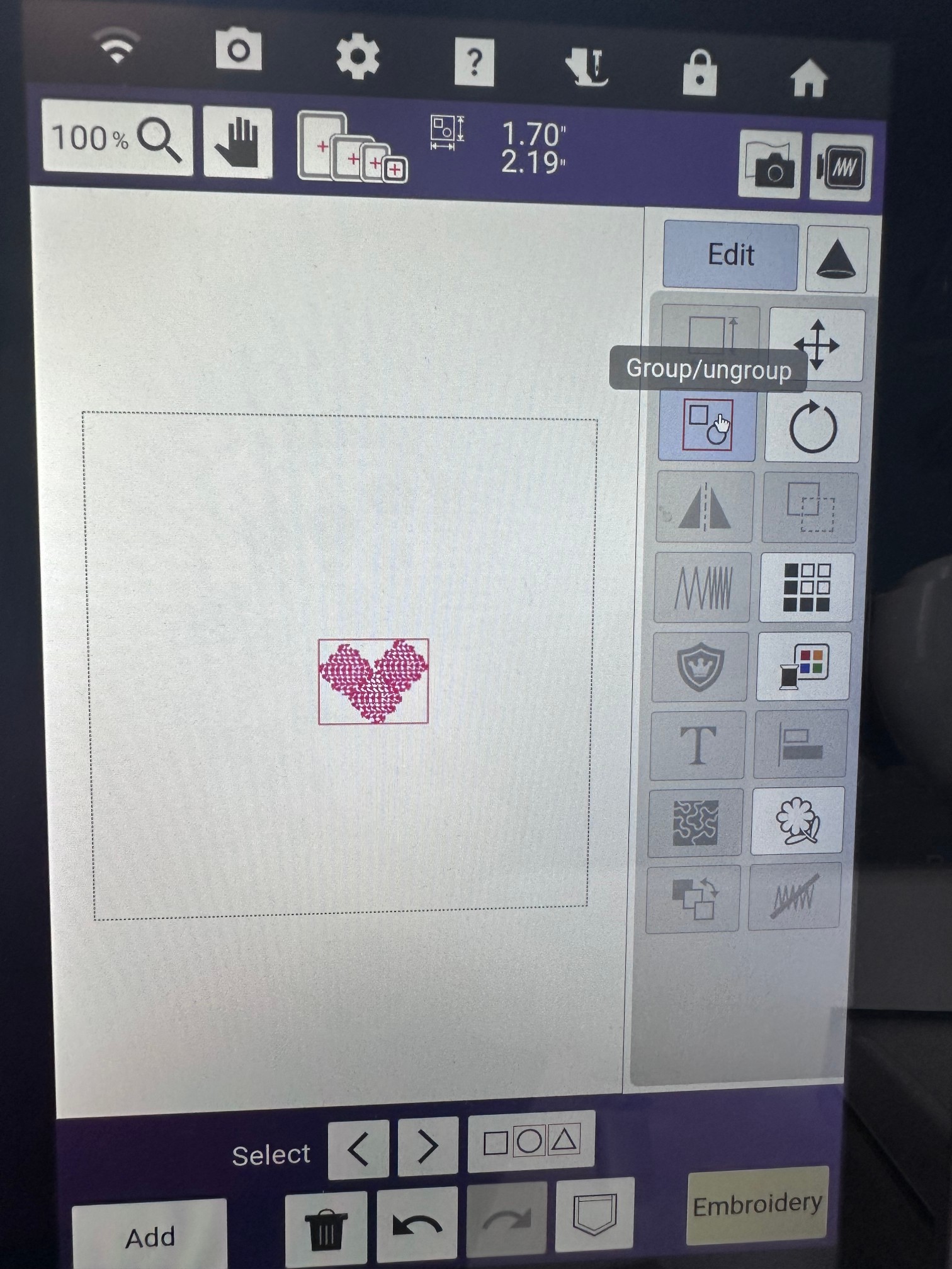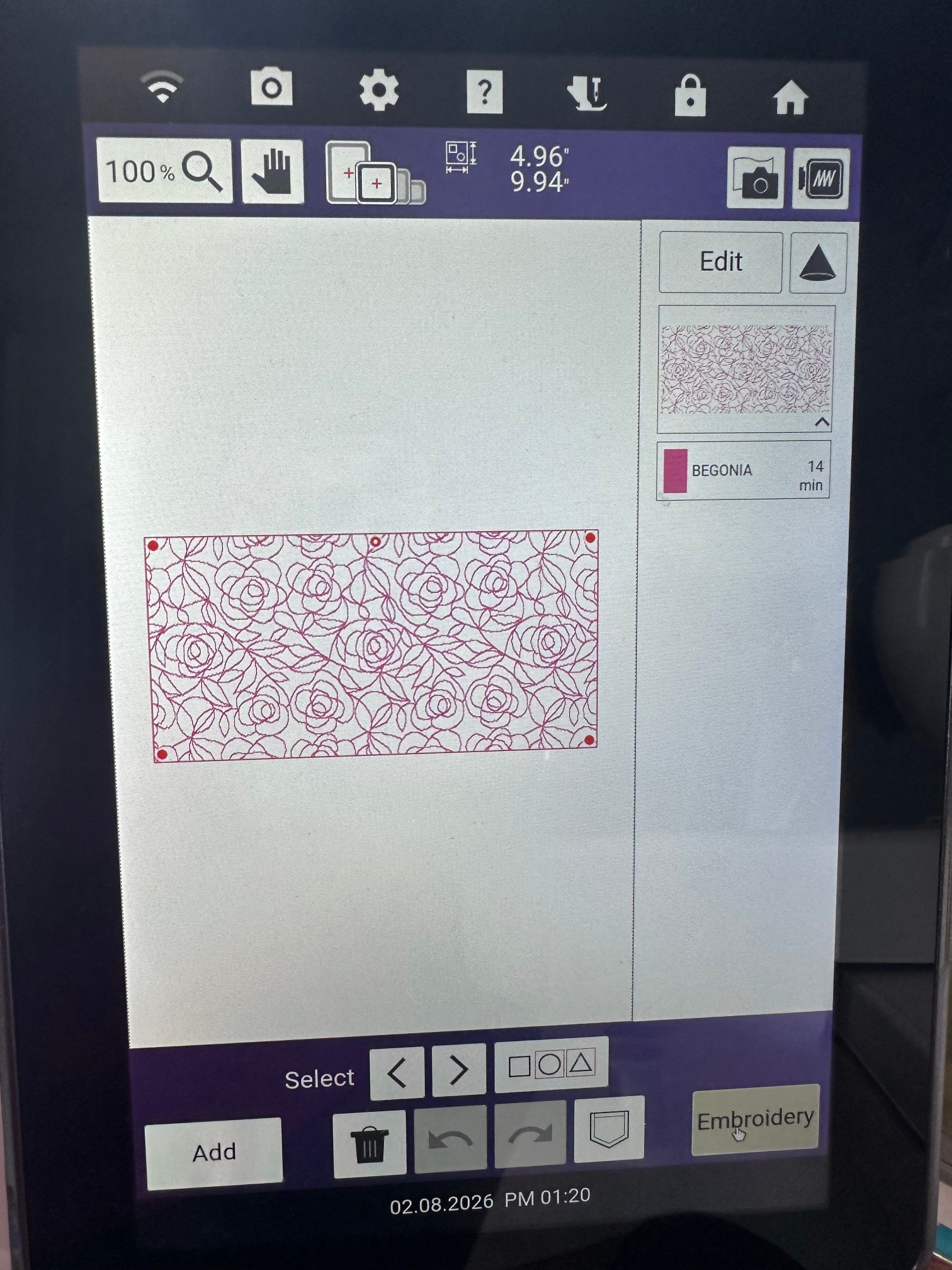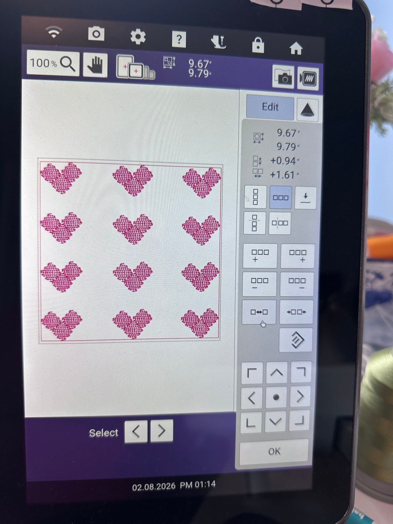 6. This will show give a visual on the screen for that hoop size to help us keep our hearts to an appropriate size for the 10 5/8” X 10 5/8” hoop.