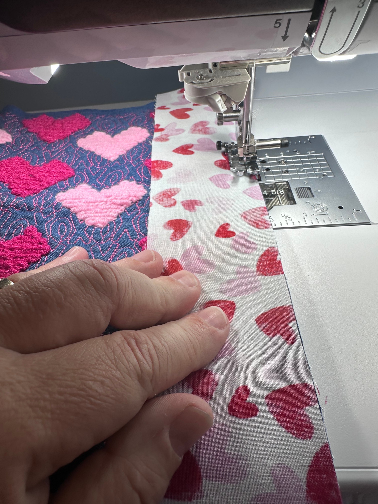 17. For this project, denim was used for the binding. This did make for some thick seams, so you may want to choose a different fabric option.