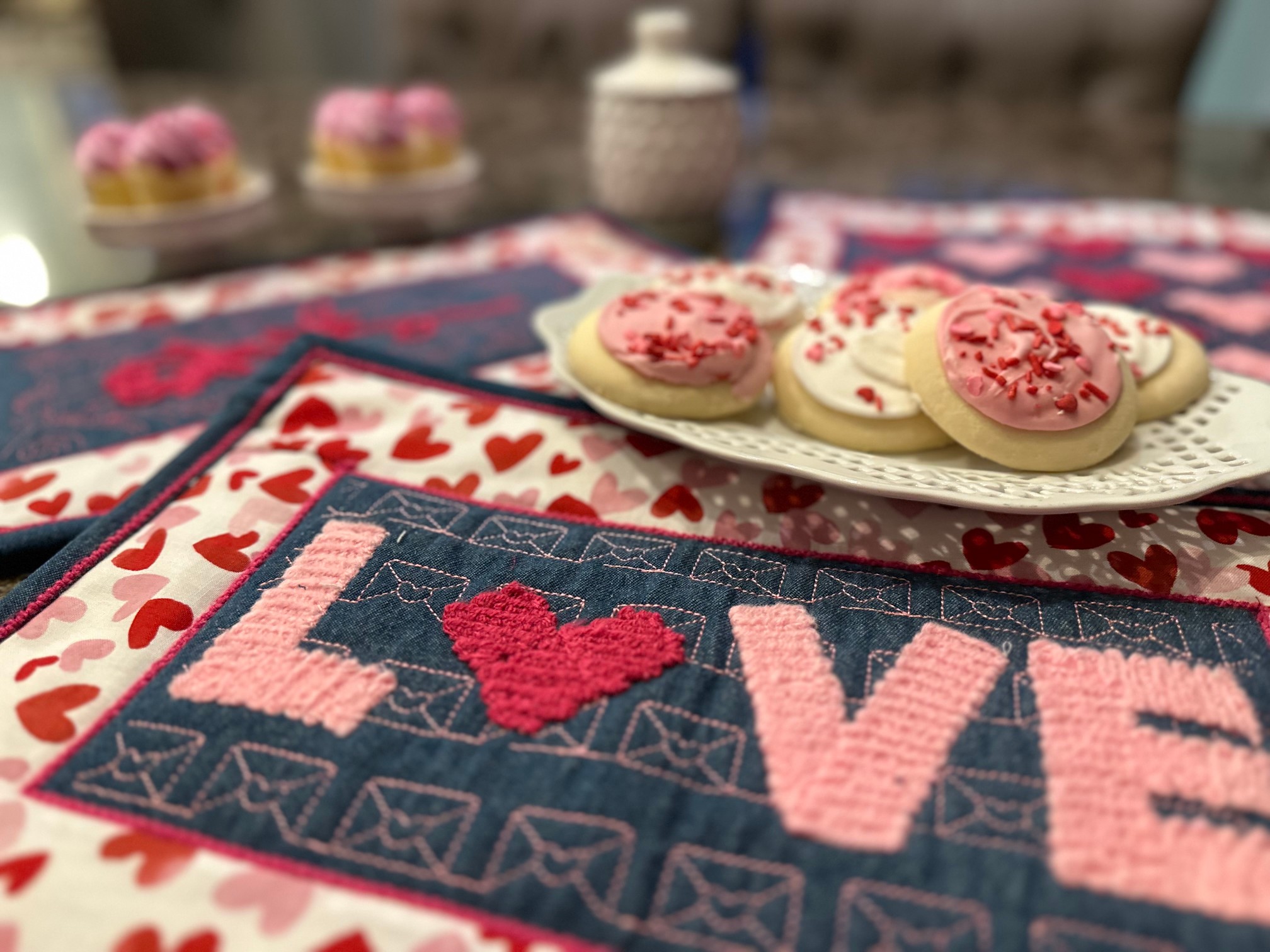 17. For the “Rose” and “Love” designs, a 5” X 10” shape was used. For the “Repeated Hearts” a 10” X 10” block was use.