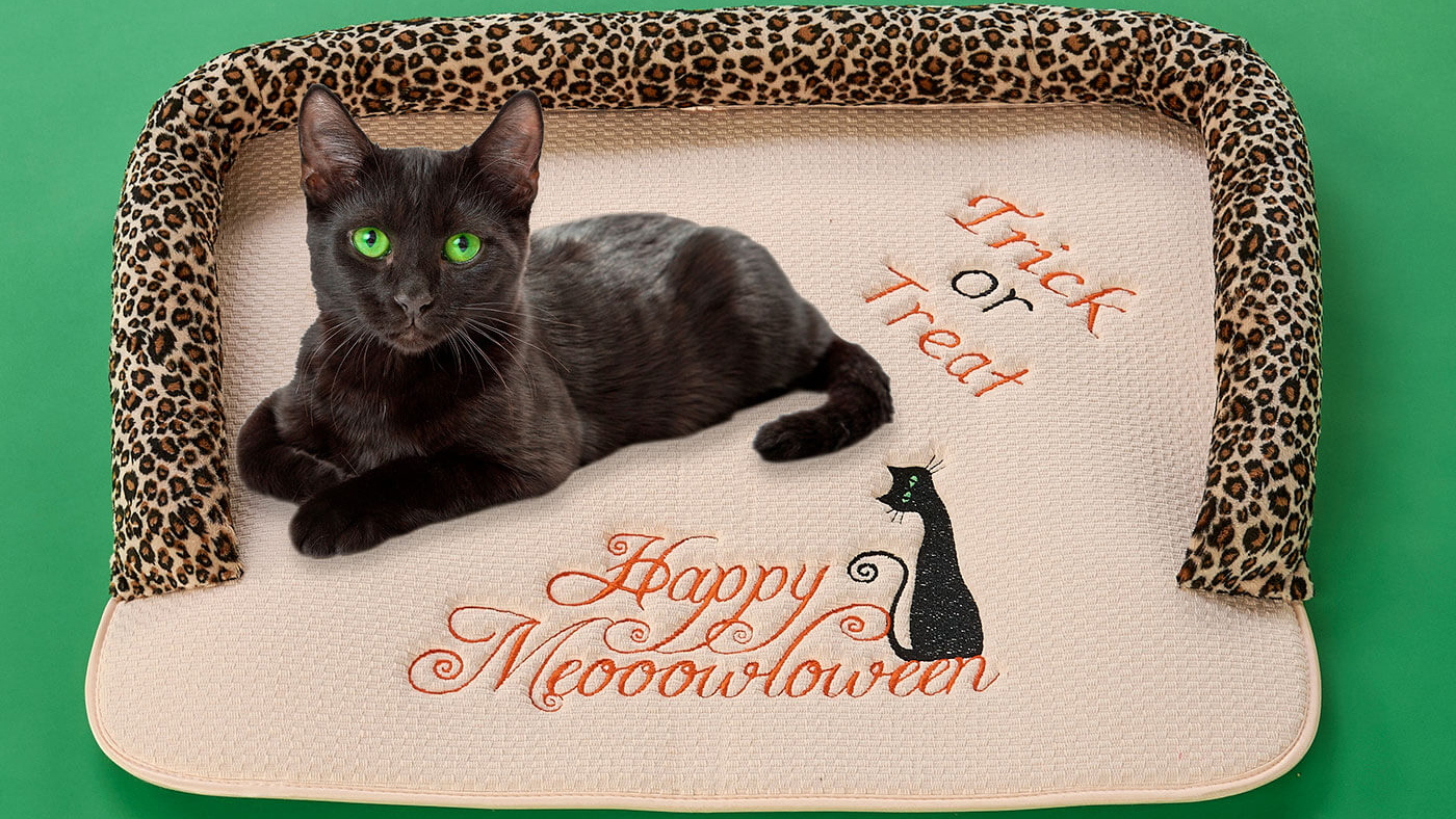 Create a cozy retreat for your pet to sit and relax after an event filled evening of trick-or-treating. Decorate your mat with embroidery using a built-in design and lettering with the use of the Baby Lock Destiny II sewing and embroidery machine. Download printable instructions.