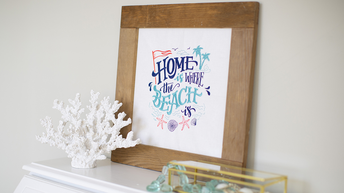 Bring the warm weather indoors when you embroider this framed art. Use Color Visualizer and three different types of thread to complete this beach-themed project.