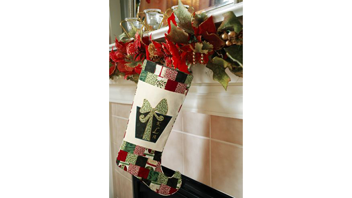 Stitch the applique design starting with the package. A solid fabric is recommended as the Monogram embroidery will be placed in this section. The bow can be a print of your choice