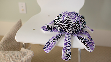 Turn the octopus right side out and stuff the body firmly with the fiberfill. Hand-stitch the opening closed. Stuff the limbs then hand-stitch the openings closed.