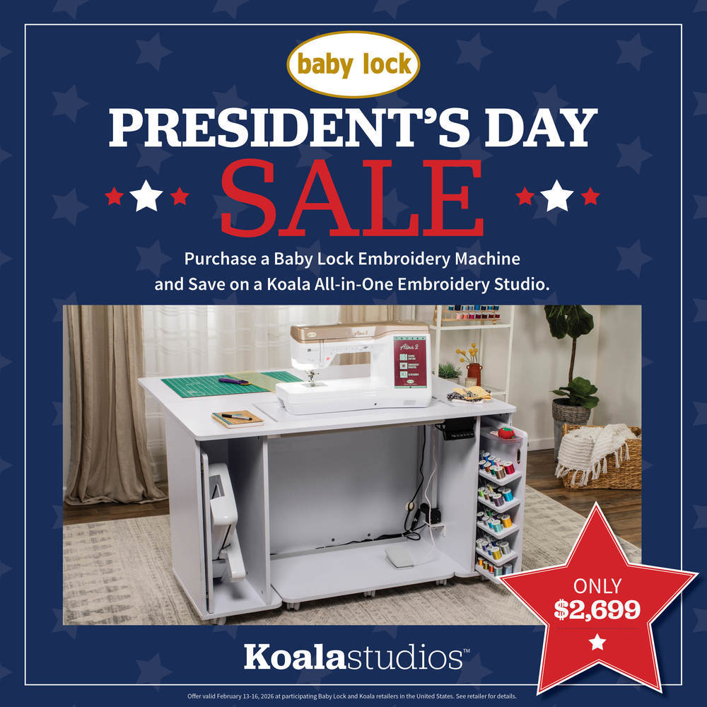 Offer valid February 13-16, 2026 at participating Baby Lock and Koala retailers in the United States. Offer valid while supplies last. See retailer for details.