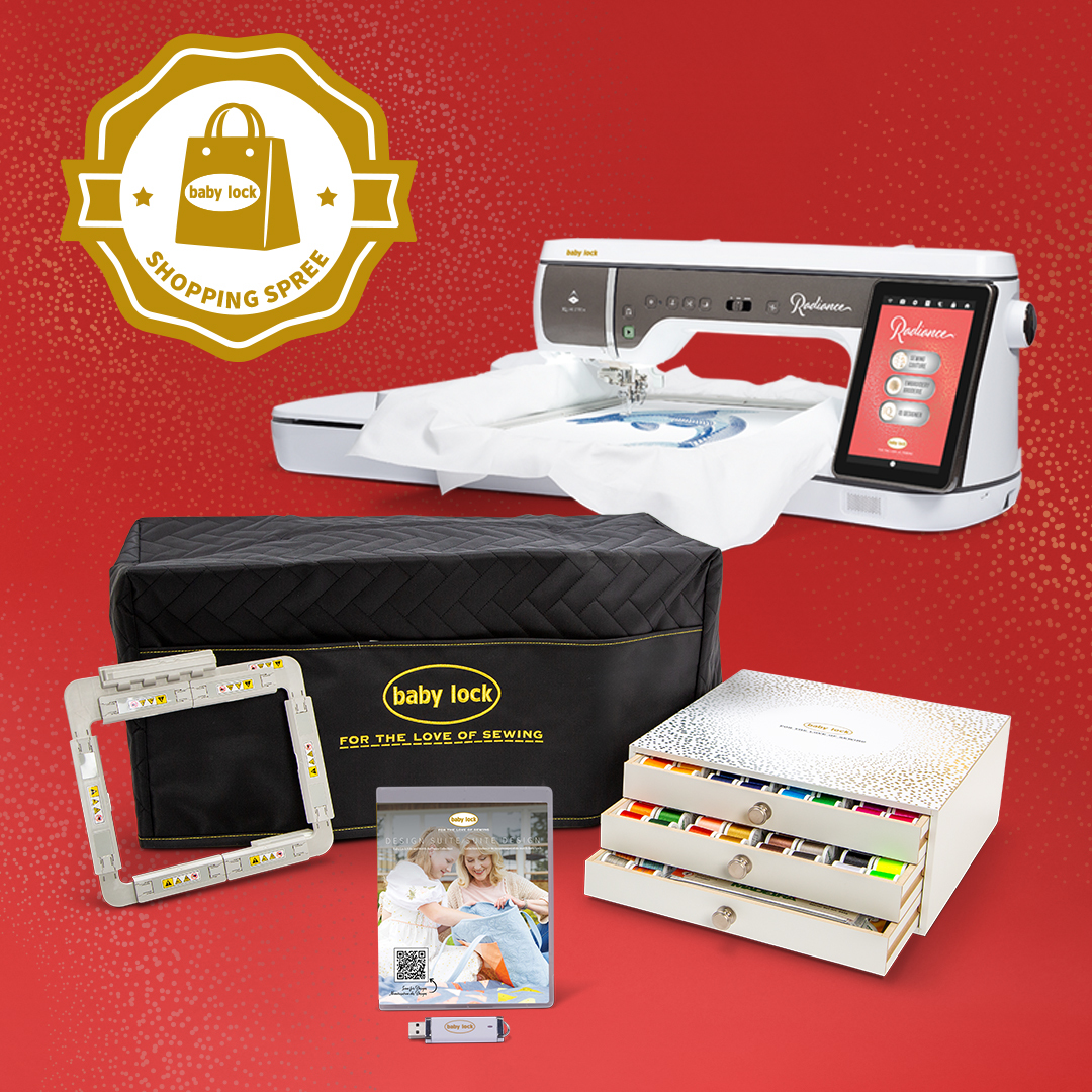 *Offer good while supplies last. Bundle and shopping spree valid with Radiance machine purchase. $1000 Shopping Spree applies to MSRP value of select Baby Lock accessories only. No cash value. Offer valid only at authorized participating Baby Lock retailers in the United States and Canada. Cannot be combined with other offers.