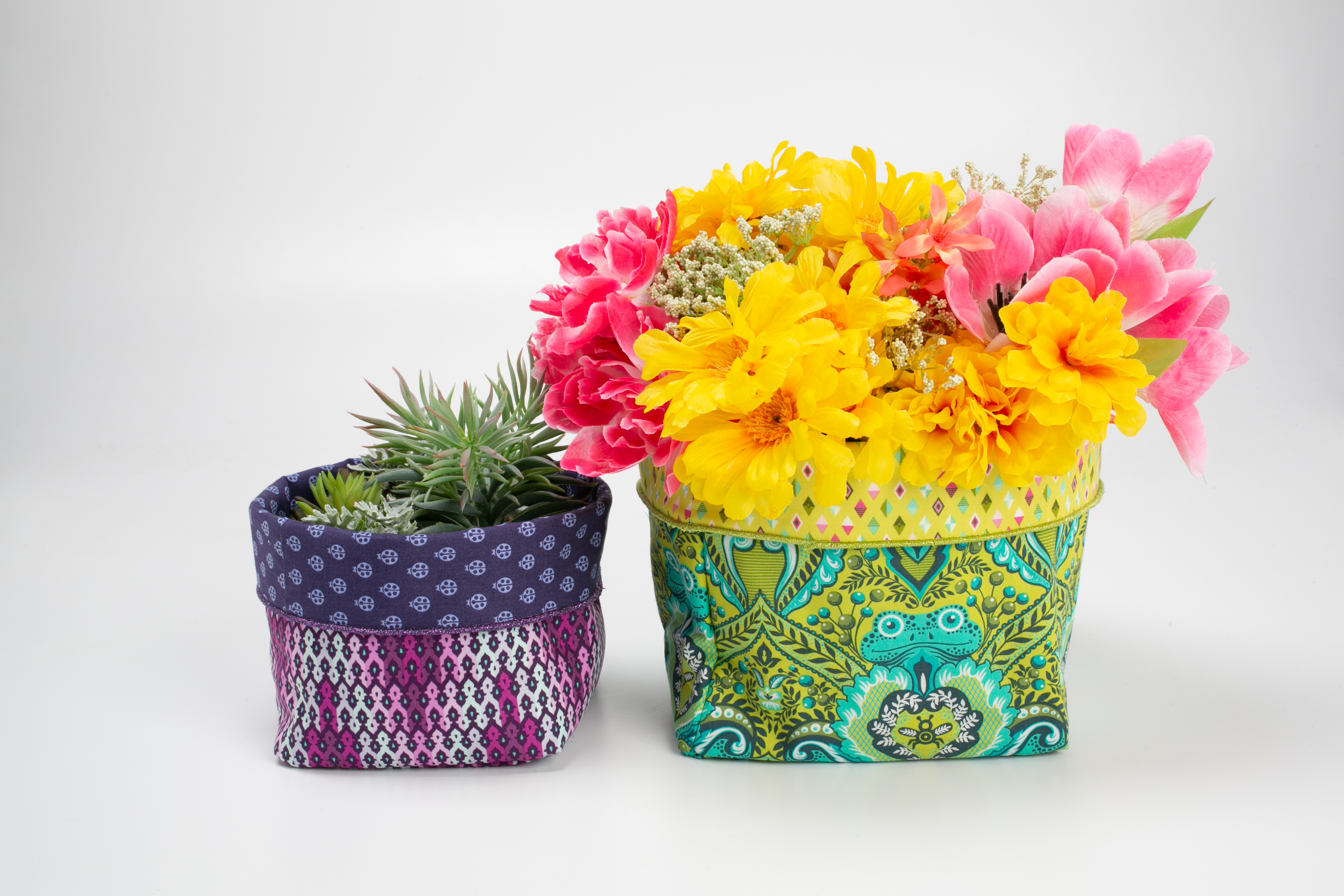 This plant cozy is a great project to do on your serger! Utilize the Open Toe Foot and see firsthand how it can make serging simpler. Then finish off the top edge with some fun decorative Madeira Glamour thread to give it some extra glitz!
