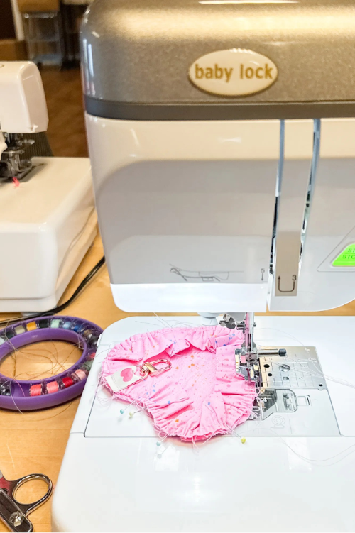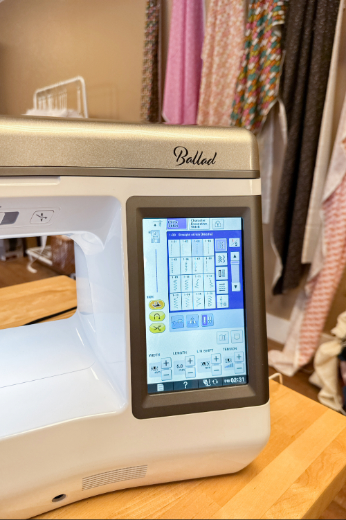Change your stitch length to the longest stitch available. I’m using my Baby Lock Ballad (which I love!) and I increased the stitch length to 5mm.