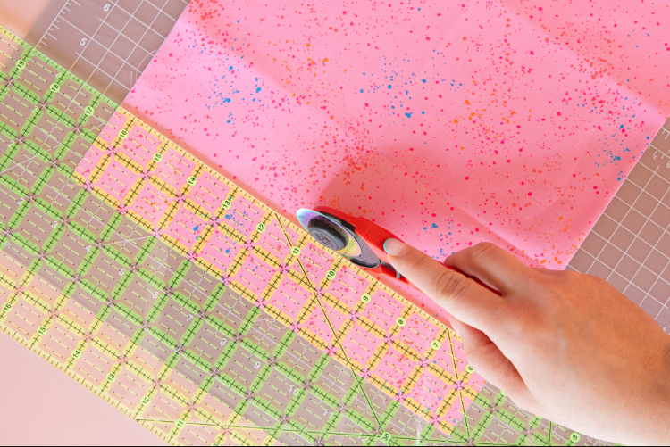 Cut one strip of fabric that is 22″ x 2″ long. 22″ is the width of 1 fat quarter which makes this the perfect project for using them. If you are using scraps, simple sew multiple pieces together to make your own long strip and press seam allowances open.