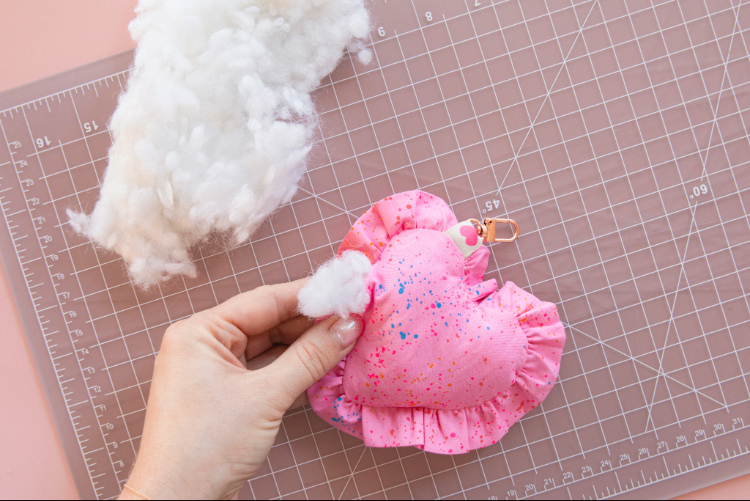 Fill with the heart with polyfil. You can also use sliced up fabric scraps or cotton batting here too.