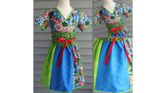 This little dress was made from the Kyoko Modkid pattern by Patty Young and features Sashiko stitched panels and bias trim. The unique pattern and fun stitching will make your daughter or granddaughter stand out! Download printable instructions.