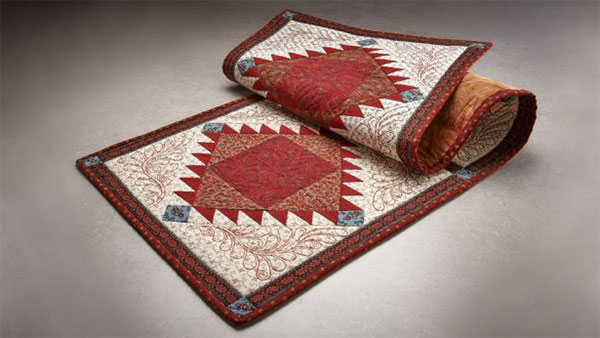 Scrap basket getting full? This table runner is a great way to use a variety of left-over fabrics while creating a beautiful table runner using the camera feature on the Destiny embroidery machine. Download printable instructions.