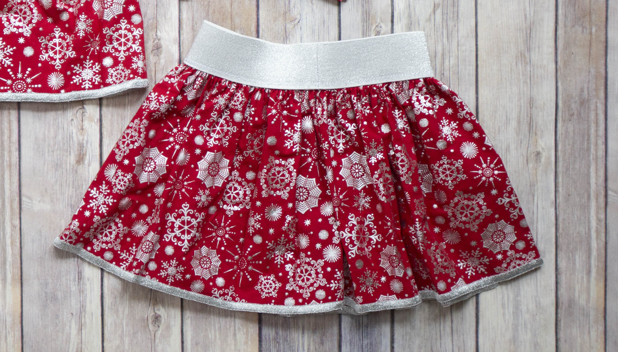 At this point you can baste and gather two parallel stitch lines around the upper edge of the skirt to fit your elastic waistband.