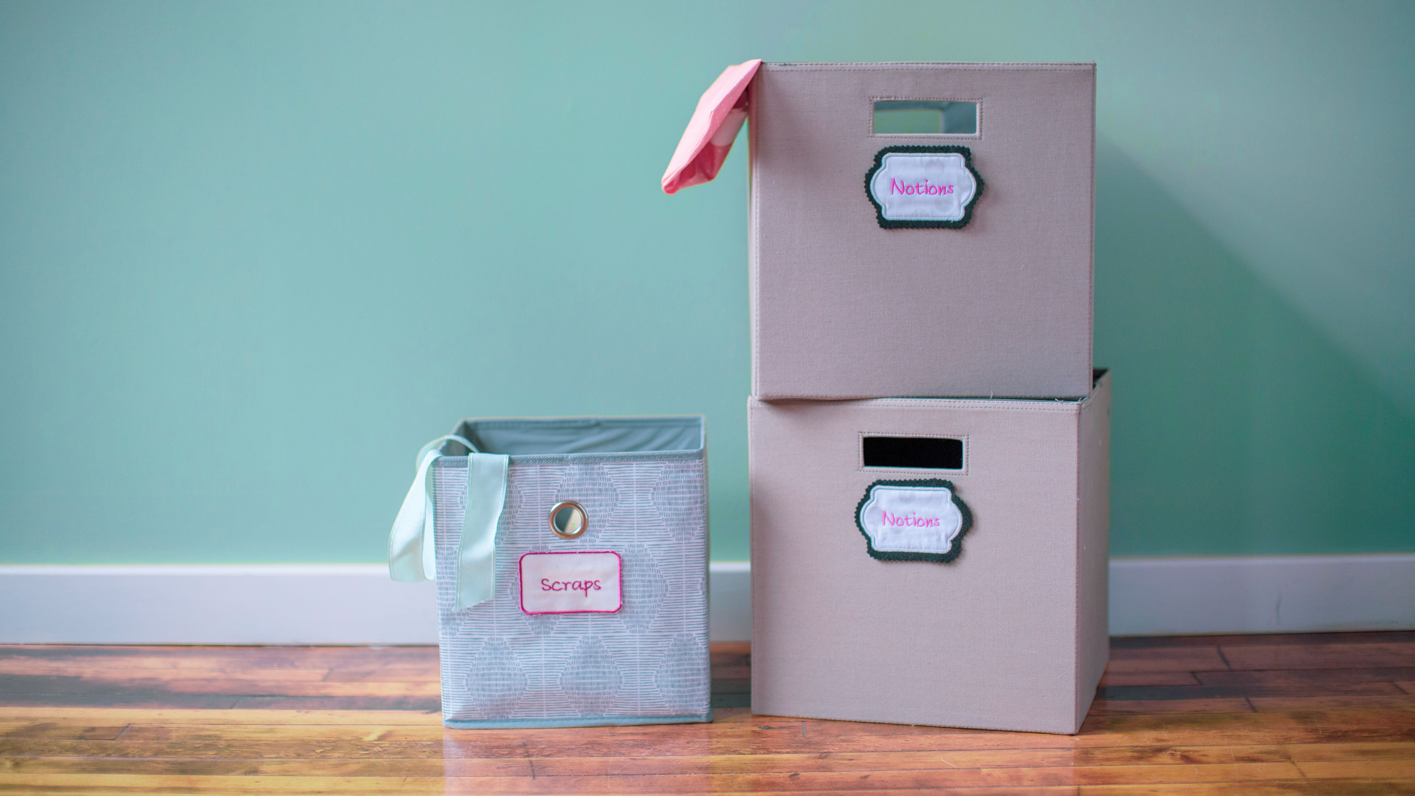 Apply double-sided stick tape to the back of the label and apply to your fabric bin!