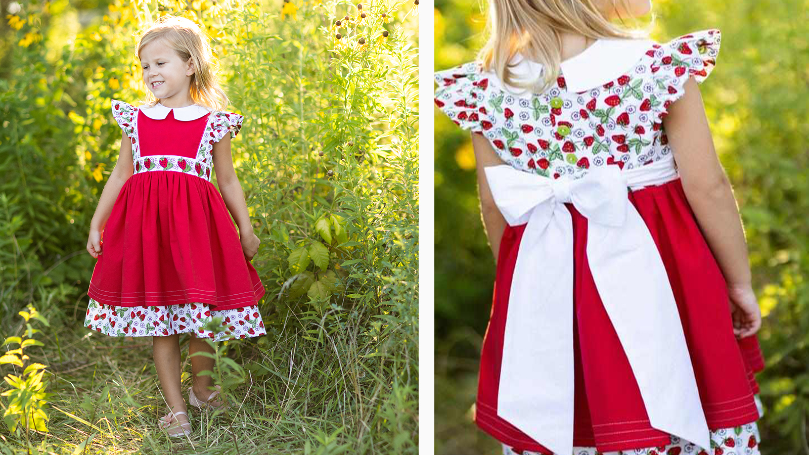 Create this adorable dress (pattern by The Cottage Mama) and customize the sash with a continuous border using your Embroidery Machine! The Strawberry Design is included in the Baby Lock Aurora Sewing and Embroidery Machine but you can use any embroidery design that fits the size of the sash (take seam allowance into consideration) and your hoop size using this tutorial. This technique can really be used for anything you’d like to add a continuous border along.