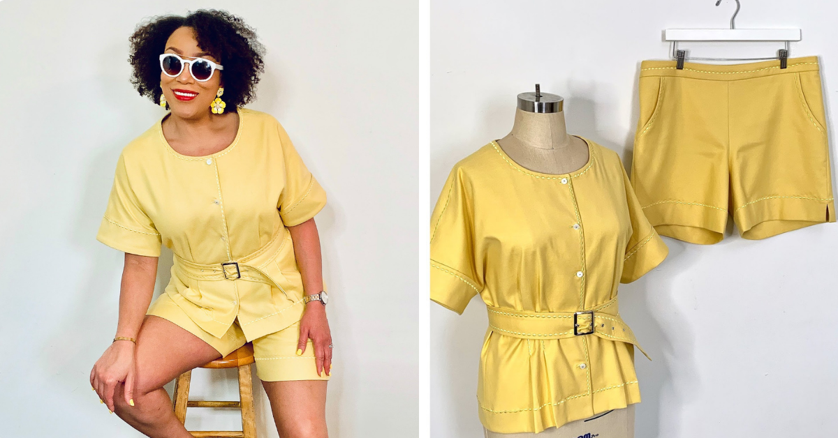 Erica Bunker created a beautiful two-piece summer outfit with Simplicity 8891. She used a built-in decorative stitch on her Baby Lock Aventura II to add a polished look to both her jacket and shorts.