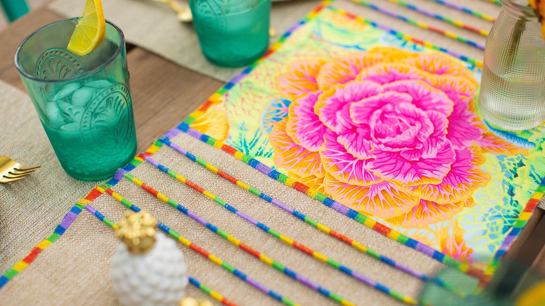 This bright and colorful table runner will add a touch of summer to any table! It comes together in a snap because it can be made completely on a Baby Lock serger. Use different stitches like the rolled edge and flatlock to create a unique and fun home décor piece to your dining room or picnic table! Download printable instructions.