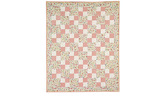 Arrange 9 rows of 7 blocks. Alternate the pieced blocks with the floral blocks.