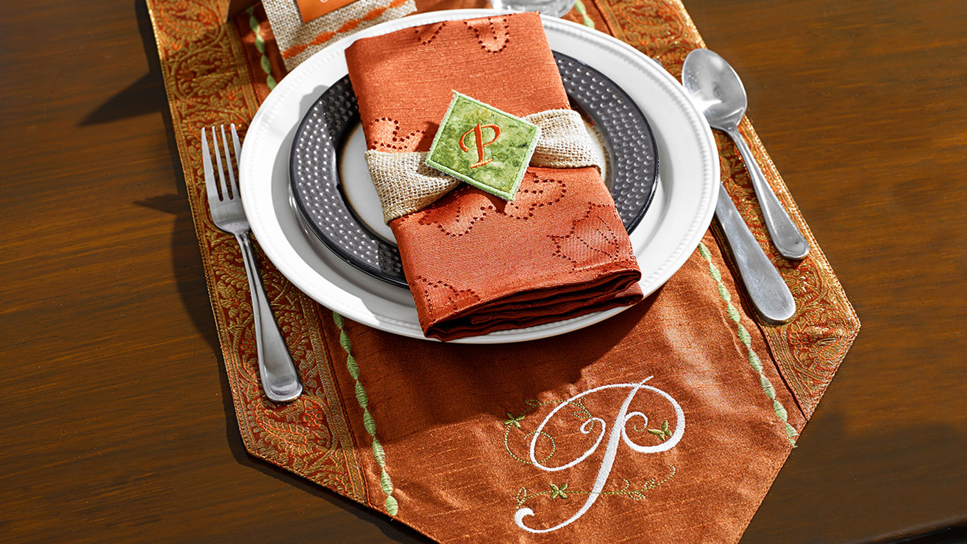 Create a beautiful Thanksgiving table setting with an embroidered runner and napkins that your family and friends will love. Use the Baby Lock Verve Sewing and Embroidery machine to create this festive fall home decor ensemble. Download printable instructions.
