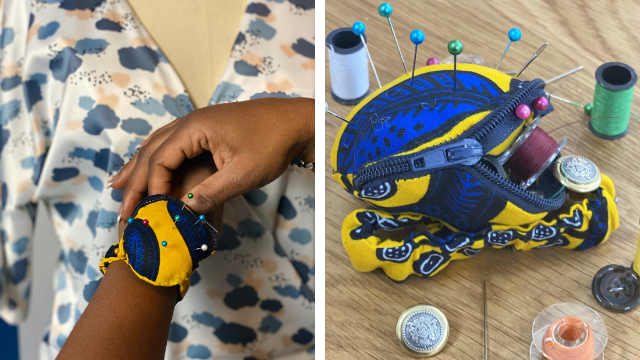 - CONGRATULATIONS!! You now have a pincushion pouch!! Slide it on your wrist and start sewing!! I hope that you enjoyed this tutorial and that you will enjoy making this quick and fun project.